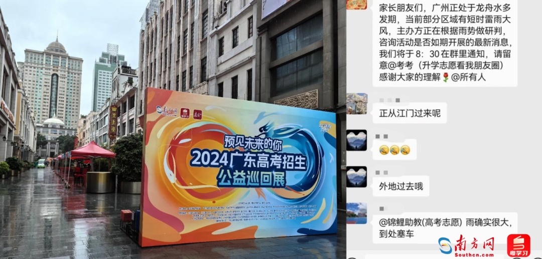 戴老师的内心其实是很淡定的。因为,他代表宁波诺丁汉大学在广东招生已经是第6个年头了,对6月端午前后的“龙舟水”天气,他很熟悉了,对这个活动主办方的风格,他也很熟悉。