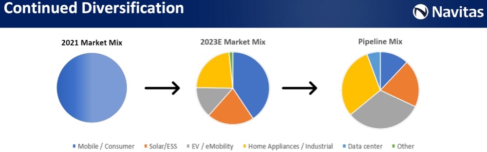 (纳微半导体测算未来不同终端市场在公司的份额占比)